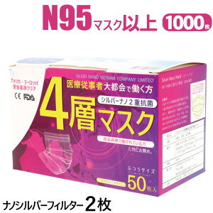【最上位クラス】4層 マスク 医療用 1000枚 静菌効果が凄い お徳用 シルバーナノ2枚 耳が痛くならない 平ゴム 肌に優しい サージカル サージカルマスク N95と同等 快適 ag 銀イオン 高品質 抗菌 送料無料 使い捨て ベトナム n95 業務用 【1箱50枚入×20箱】 おすすめ