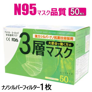 医療用 マスク 3層 50枚 ふつうサイズ 静菌効果が凄い 爽快 耳が痛くならない 平ゴム 肌に優しい 快適 抗菌 銀イオン シルバーナノ N95と同等 高性能 高品質 サージカルマスク 送料無料 使い捨て マスク ベトナム n95 大人用 おすすめ