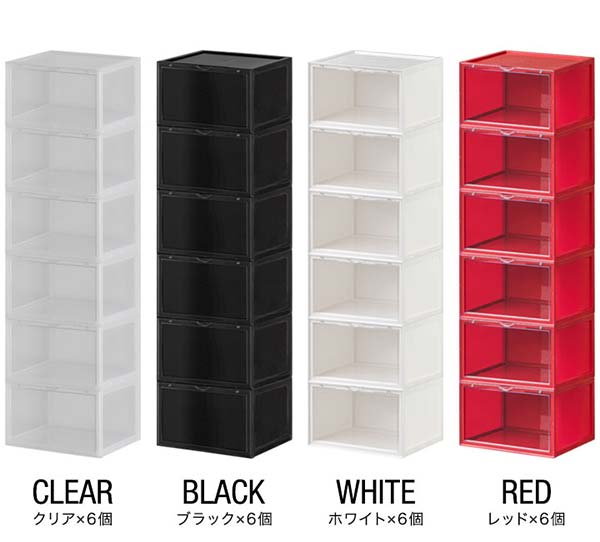カラー:・クリア×6 ・ブラック×6 ・ホワイト×6 ・レッド×6 サイズ:(約)幅36cm×奥行27.5cm×高さ22cm 材質:ポリプロピレン、ポリスチレン 重量:(約)1.1kg 特記事項:※こちらの商品はお客様組み立てとなります。