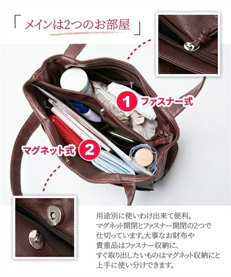 収納力抜群の実力派バッグが新登場!・用途別に使えるマグネット開閉とファスナー開閉の2つのお部屋。